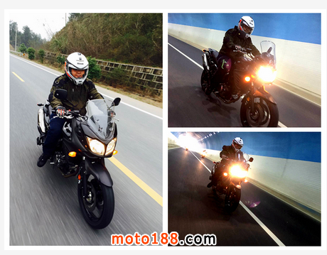 起步反應直接,得益于輕量化的車身設計,引擎輸出和車架匹配的非常完美。V-Strom 650減震調校偏公路,比較柔軟,舒適性較高,能夠較好的過濾來自復雜路面的反饋。引擎前側的導流罩經過精心設計,能有效地導走引擎熱力,不至于在夏季讓騎士感到烤灼。在急彎以二檔行駛,扭力輸出既順滑又持續平均,只要把握好油門控制,絕不會出現一驚一乍的感覺,這可能是日系車的共性。