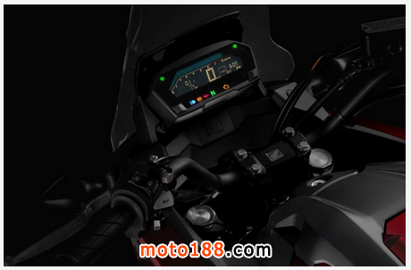 ●2016 HONDA NC750X新設計的液晶體儀表,新的Showa前叉頂擁有比上一代精致的設計,比上一代高70mm風鏡相信有更佳擾流效果。