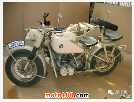 真正的偏三輪的集大成者,在上個世紀三十年代隨著希特勒的復興計劃,早在閃電戰開始之前,德國就已經采用了比其它任何國家軍隊都多的摩托單車和挎斗摩托車,1935年德國陸軍就成立了成立軍用摩托車部隊(Kradschützentruppe),1937年11月德國陸軍最高統帥部 OKH(Oberkommando Heer)要求寶馬(BMW)和尊代普(Zundapp)二廠為軍隊研制專用挎斗摩托,設計目標規定:車輛最大載荷500KG(三名全副武裝士兵),越野輪胎寬度4.5英寸,直徑16英寸,且擋泥板必須預留足夠空間以便加裝防滑鏈,最大行程350公里,最大時速95公里,最小速度4公里(慶典巡游用),地距15厘米,在這些要求下,寶馬推出了自己的產品BMWR75。和其他軍用車輛相比,摩托車重量輕速度快,能適應崎嶇的地形,主要被用來執行偵察任務。摩托車在聯絡和偵察中被廣泛使用,德軍所有的坦克師都配備有摩托兵單位。特別是德軍空降部隊,更是將摩托車作為重要代步工具,為他們傘降后的快速機動提供了便利。德軍將摩托車分為三類:350cc以下的稱為輕型摩托車,350-500cc之間的稱為中型摩托,超過500cc的則為重型摩托車。