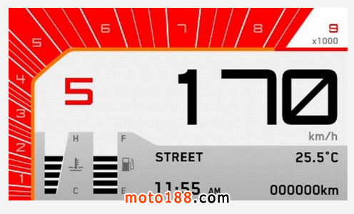 690 Duke采用了一塊彩色TFT屏幕,這款屏幕的顯示會根據不同的車況有不同的顯示效果,不如當發動機剛啟動出于冷機的時候,轉速指示條會以藍色顯示,等發動機進入理想工作溫度時會以黑色顯示轉速,達到紅線轉速時指示條會變成紅色同時換擋指示燈也會亮起。此外這個儀表在白天和夜晚也會有不同的顯示效果,日間行駛時,儀表板以淺灰色打底,數字顯示為黑色;夜晚行車時,儀表會切換到深灰底色,并用白色字體顯示數據。所有的這些設計都是為了能夠時刻為騎手提供直觀易讀的數據顯示。