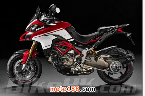 以Multistrada 1200S為基礎,配以比賽車花,三柱式輪圈亦有賽車紅邊標記。原裝的出二尾喉換入了Ducati Performance的Termignoni碳纖尾鼓,車頭亦換上了短版碳纖風鏡。頭沙板、油缸前端的飾片、前擾流兩側的飾片,都用上了碳纖維制作。座鞍上可以找到專用的紅色縫線。避震是Pikes Peak的強項,前后改用上Ohlins倒叉及TTX36尾避震。