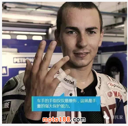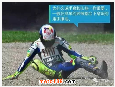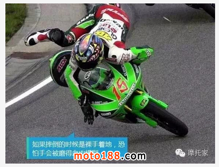在很多摔車事故中,騎士都是下意識的伸手支撐身體,如果用肉掌撐地的話……