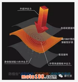 一般是通過內(nèi)置護(hù)具起到防摔的功能。護(hù)具材質(zhì)分為普通壓縮EVA、CE認(rèn)證的緩沖材料、CE認(rèn)證的慢緩沖材料。