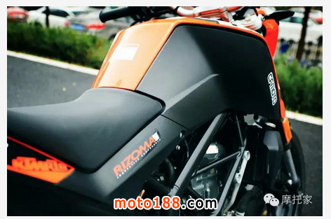 油箱造型和拉花都非常搶眼,缺點是10.5L的油箱真的有點小,或許越野車起家的KTM對油箱的定位是夠用就好,但城市激烈駕駛百公里3個多的油耗,一箱油跑兩百多公里就報警了也是覺得有點麻煩,僅僅城市代步來說的話也能接受。