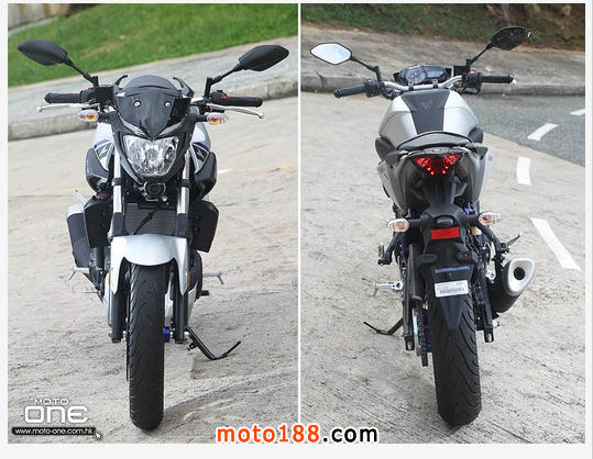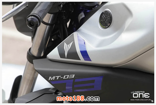 一直以來,所謂入門車的定義離不開車身纖巧、重量輕、易操控、易推車、小排氣、配置基 本裝備及經濟車價等等,MT-03也不例外,是一款新手也可迅速地享受駕駛樂趣的舒適型街車。只有780mm坐高,畢直座姿及纖巧車身,使大部份新手在任 何情況下停車都可雙腳著地,加倍駕駛信心。