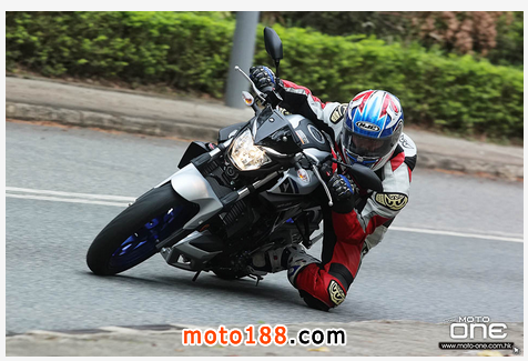 至於MT-03對開慣大排跑車的李有昌來說,42ps馬力當然沒法滿足他的要求,然而 入門車提供的靈活轉向反應是騎士最喜歡的共通點。李有昌說雖然MT-03輕巧細小,但無須屈手屈腳卷縮身體駕駛,即使相對畢直但舒適的座姿(現時NK車流 行輕微俯伏模仿大包圍座姿),配合闊度適中的轪把,雙臂沒有被撐開的感覺,在搬身過彎時上身感到很自然及輕易,即使彎速絕不下於大排跑車,而設定適中的腳 踏在較低傾則角度過彎時也不會磨腳踏。