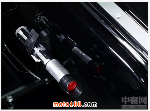 這款《星球大戰(zhàn)》限量版烏拉爾稱為黑暗力量,采用全黑色涂裝,發(fā)動機、減震甚至是排氣都漆成黑色,確實夠“黑暗”。而最讓《星戰(zhàn)》迷們興奮的是,在“挎斗”旁邊配備了一把光劍,沒錯!是一把貨真價實可伸縮的一米長光劍!