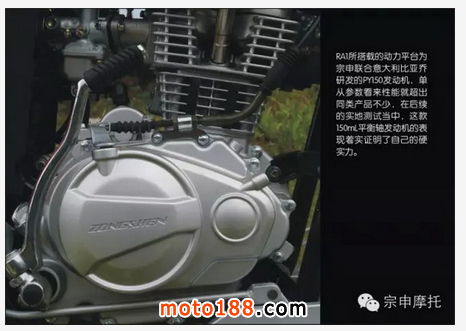 RA1所搭載的動(dòng)力平臺(tái)為宗申研發(fā)的PY150發(fā)動(dòng)機(jī),單從參數(shù)看來性能就超出同類產(chǎn)品不少,在經(jīng)過多位專業(yè)評測員實(shí)地測試后,這款150mL平衡軸發(fā)動(dòng)機(jī)的表現(xiàn)著實(shí)證明了自己的硬實(shí)力。