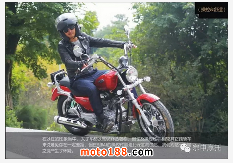 手把設(shè)計(jì)氣勢很足,較國內(nèi)同類太子車手把位置相對高些,也更加張揚(yáng),但駕駛起來頗為舒適。