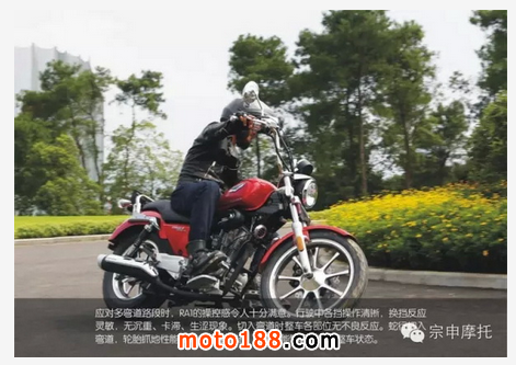 RA1專為亞洲人量身定制所以在操控起來比純粹的美式太子更加順手,評測中RA1在動(dòng)力、操控、耐久性、舒適性等方面表現(xiàn)出色,能夠勝任強(qiáng)度較大的長途騎行任務(wù)。