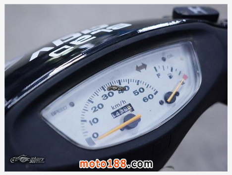 Dio 38期是白底墨綠色字體的指針儀表。