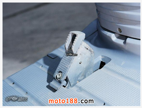 車輛的大梯控制位于腳踏板中間的位置,這個設計實在是太獨特了,對于第一次接觸這輛“大貨架”的斌子來說,實在不知道該如何操作。還好在車輛前護板下面找了說明書,雖然看不懂日文,但是根據圖片和經驗,我還是蹩手蹩腳地把“大貨架”支了起來。