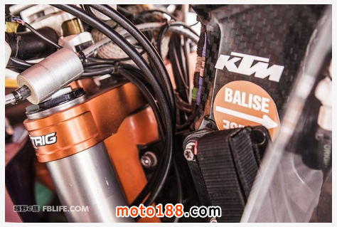 對于達喀爾拉力賽摩托車組的選手來說,他們“肉包鐵”一樣的駕駛環境要比汽車組的車手惡劣很多,危險系數也更大。而什么樣的導航系統、警示系統以及安全系統才能夠配合車手順利抵達目的地呢?今天讓我們近距離的觀察一下KTM車隊的達喀爾KTM 450賽車,并由KTM車隊車手Jordi Viladoms幫我們解讀,看看賽手背后到底擁有何種的高科技,能夠保障車手安全、快速抵達終點。