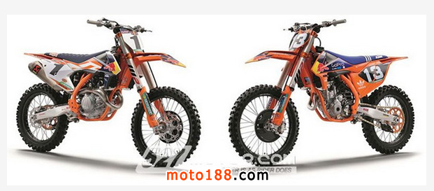 工廠版450 SX-F和250 SX-F的涂裝與車手Ryan Dungey和Jessy Nelson駕駛的競賽車型相同,并且采用了相同的車座、橙色的副車架和風箱。