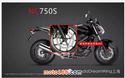 NC750S采用全新鋁合金尾搖臂,重量更輕。車(chē)身寬度由760mm增闊至780mm。其余長(zhǎng)度、高度和座高都維持不變。車(chē)架、避震系統(tǒng)、輪胎都沒(méi)有變動(dòng),但ABS是標(biāo)準(zhǔn)設(shè)備。制動(dòng)牛角也加上可調(diào)距離的功能 。座墊材料也有修改。防盜設(shè)備有HISS芯片防盜鑰匙,尾燈是LED規(guī)格。