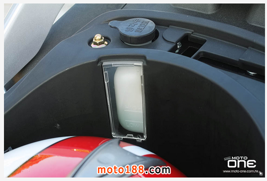 ●位于座椅下的引擎散熱液,讓騎士檢查容量。