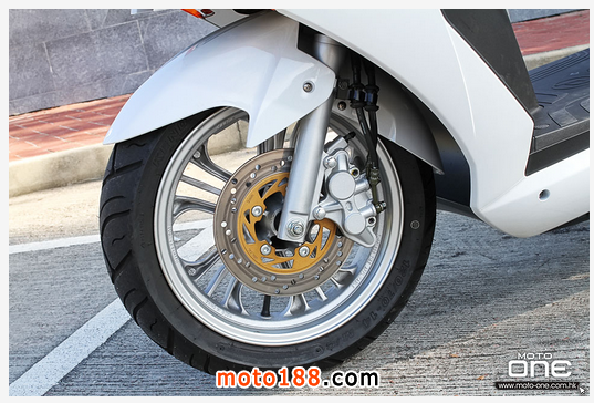 ●配置增加行車穩(wěn)定度的前后14寸輪框及聯(lián)動煞車系統(tǒng),還有前后均是2活塞煞車卡鉗配煞車碟。