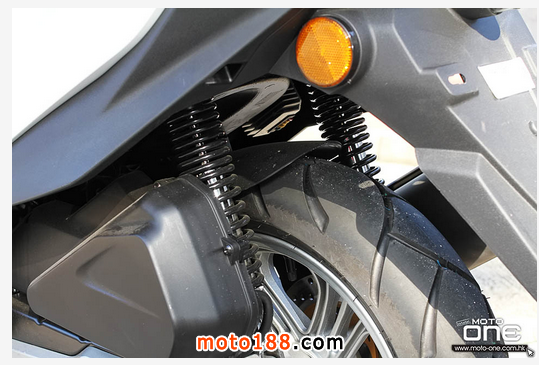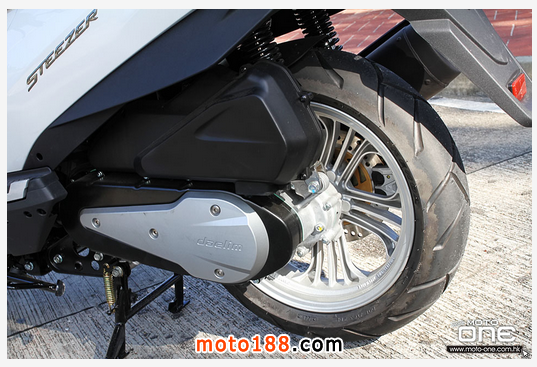 雖然Daelim Steezer的體積較一般125大,但配備前后均是14寸的輪框后,減少了一般125輕飄飄的行駛感,新避震對140磅的編者來說有點硬,而擁有聯(lián)動煞車系統(tǒng)的掣動應(yīng)付Steezer綽綽有餘。