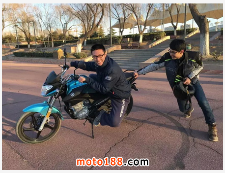 金金對雅馬哈YBR150一點也不“溫柔”,燒胎、抱死、抬頭、飛坡,從各種方面來試這輛車的極限。