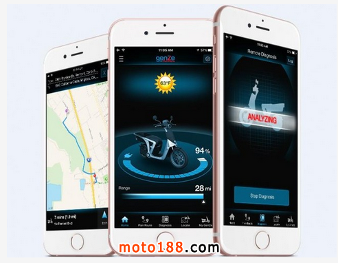 GenZe 2.0還引入了CAN總線,標準和汽車的一樣。這輛車內置了愛立信的通信模塊,可以與手機互聯。GenZe公司為此專門制作了一個App,可以查看車輛位置、充電狀況、天氣、規劃適合騎行的路線等。