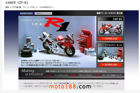 想完成這么一輛超精密版YAMAHA YZF-R1M,一定要具有超人般的耐心和毅力才行,零件圖紙的下載地址就在這里:http://global.yamaha-motor.com/jp/yamahastyle/entertainment/papercraft/ultra/yzf-r1m/