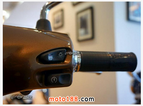 LX150的燈光無法全部關閉,但是可以在小燈和大燈之間進行切換。把套也顯得挺精致,上面還有Vespa的Logo。