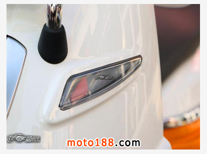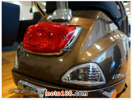 排氣管尾段的造型也是Vespa的賣萌風格,上面的電鍍防燙罩也是為了配合古典精致的設計。