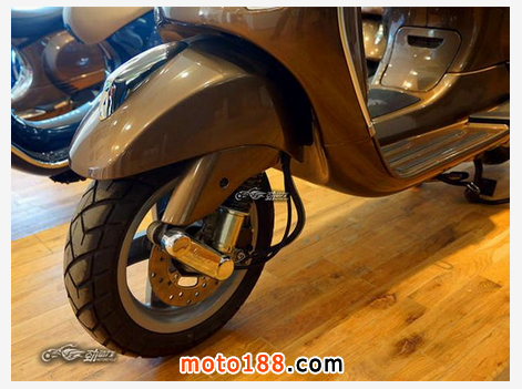 相比LX150的懸掛設計,“姜戈”的正立式前叉就顯得很普通了。不過,標致在車輪上花了心思,休閑版白色的輪輞,電鍍的輪轂罩,再配上白邊胎,營造出濃郁的復古風情。