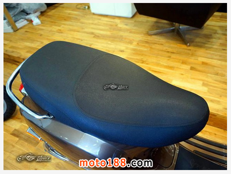 “姜戈”的復古運動范兒車座顯得更加精致,面積還要大于LX150,讓車手和后座乘客都擁有不錯的乘坐空間,后座上的小靠背是標致原廠選裝件。