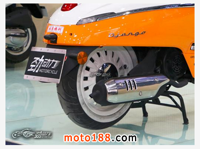 與LX150一樣,也是單搖臂配合單減震器,不過減震器藏在里面,不如LX150便于調節。另外,“姜戈”的后輪與前輪的尺寸完全相同,必要時可以前后互換。