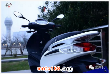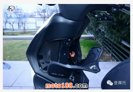 外觀上最喜歡的設計是新加入的后兩側黑色裝飾條。這個裝飾條同時也是防刮擦的保護條,能夠單獨更換,個人覺得超貼心。第二心儀的方面是踏腳前的兩扇門,分別是儲物盒蓋和油箱蓋,質感很好!給人逼格很高的感覺。