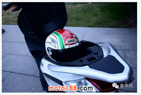 坐墊下的馬桶能放下兩個小的四分三半盔,一個完整的全盔是無法放下的,所以如果喜歡戴全盔的車友在購買前,需要先試放一下。