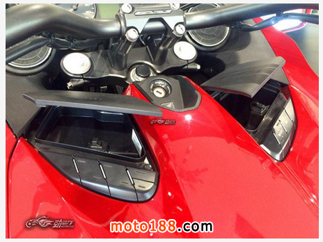 油箱罩上有兩個小型儲物盒,放一些票據和零錢還是很方便的。并且各個功能按鍵都設計的比較大,騎士帶著手套也能進行準確的觸控。
