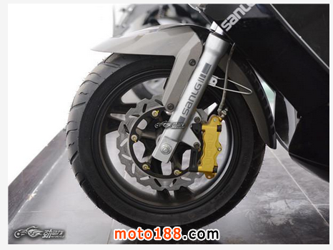 前制動的配置很強悍,采用了單鉆孔盤配對向6活塞卡鉗。