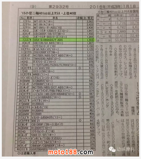 2015年7月在日本GSX-S1000正式上市,僅短短半年左右的時(shí)間,在全國(guó)兩輪機(jī)車(chē)銷(xiāo)量榜上排行第七位,可謂是后來(lái)者居上,如果換成全年都有現(xiàn)車(chē)銷(xiāo)售的話(huà),位居榜首也是有可能的!