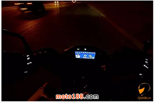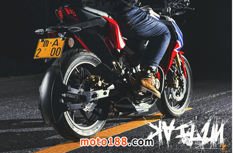 后搖臂造型中規(guī)中矩,是日系四大廠慣用在中小排量車上的那一種。亮點(diǎn)在于它的后剎車,采用了日系大排車御用的日清剎車系統(tǒng)。配置可謂相當(dāng)厚道、直接秒殺國(guó)產(chǎn)其他品牌同級(jí)別的車型。配備140/70R17的后輪,不用多說(shuō)大家也能想象到,CBF190R在后方角度欣賞氣勢(shì)絕對(duì)不輸于Z250、CB300F一類的街車。 在前燈的造型上確實(shí)存在著不小的差異,的確它的造型讓以往Honda的忠實(shí)粉始終不能接受,它的形狀在側(cè)面看和整車確實(shí)非常不協(xié)調(diào),正面看尚可。本田公司稱這樣的外形設(shè)計(jì)是對(duì)光源和整車流線最好的運(yùn)用。在這臺(tái)車上你是找不到一顆燈泡的,因?yàn)槿嚨墓庠慈坎捎肔ED材質(zhì)(包括轉(zhuǎn)向燈、后牌照燈)LED燈相對(duì)于氙燈的好處最大的體會(huì)就是在節(jié)能上,但是霧天穿透力來(lái)講LED燈相比氙燈來(lái)說(shuō)就差了這么一點(diǎn)點(diǎn)。要說(shuō)缺點(diǎn)嘛那就是在遠(yuǎn)光的時(shí)候不夠遠(yuǎn),更像是一個(gè)遠(yuǎn)一點(diǎn)的近光燈,在山路高速騎行時(shí)多多少少會(huì)讓新手們有些不安。 近光燈效果