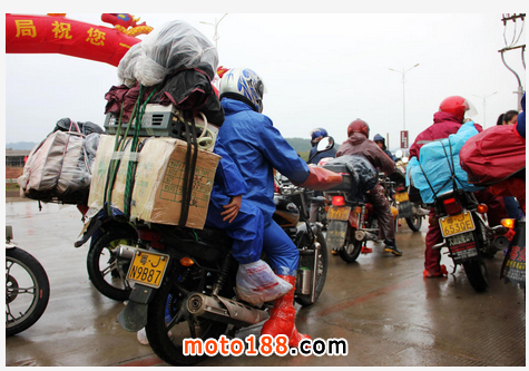 核心提示: 1月26日,廣西梧州市出現寒潮陰雨天氣,氣溫降至6℃左右,寒風刺骨,眾多返鄉鐵騎大軍披著雨衣,穿著水鞋在寒風冷雨騎行。他