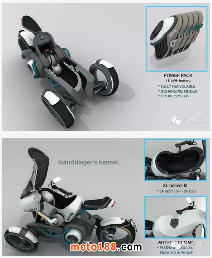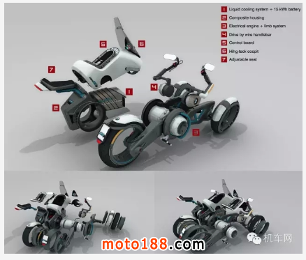由于采取了倒三輪的外觀,這使它缺乏了一點攻擊性。據稱這款車整合了很多高端硬件,這比較符合未來摩托車設計的方向。 GEth的擋風玻璃可以顯示給司機包括路況在內的重要信息。
