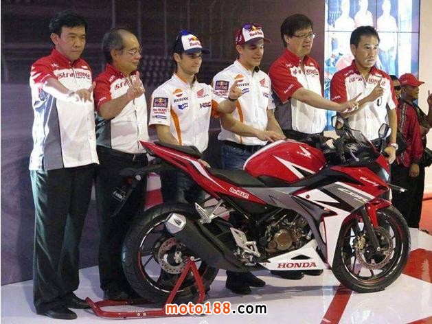 十多年間,CBR150R已經(jīng)歷兩次轉(zhuǎn)款,其間廠方還加推125及250版本,而最新2016版本剛于印尼曝光,印尼HONDA更請(qǐng)來(lái)整支HONDA Motogp車(chē)隊(duì)協(xié)助宣傳新車(chē),兩位廠隊(duì)車(chē)手-柏度莎及馬坤斯也有出席,并且在仙圖賽道試駕,可想而知印尼市場(chǎng)對(duì)HONDA有多重要。