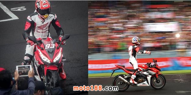 ●HONDA請(qǐng)來(lái)Motogp車(chē)隊(duì)前來(lái)印尼,協(xié)助宣傳新款CBR150R,兩位廠手-柏度莎及馬坤斯更在印尼仙圖試駕新車(chē)。