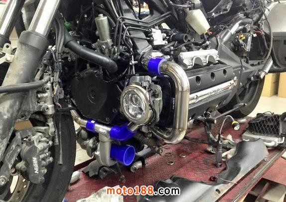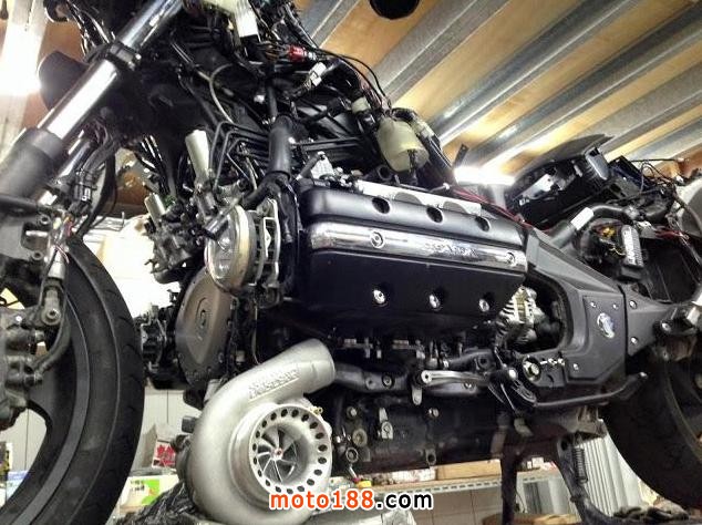 大排摩托車改裝渦輪增壓,在國外早已不是新鮮事,但在休旅車型的Gold Wing 車系上,則相當(dāng)少見(目前只知道唯一一輛),而短風(fēng)鏡無后箱的F6B,更是第一次有人裝上渦輪增壓。