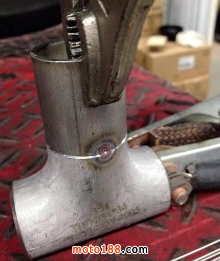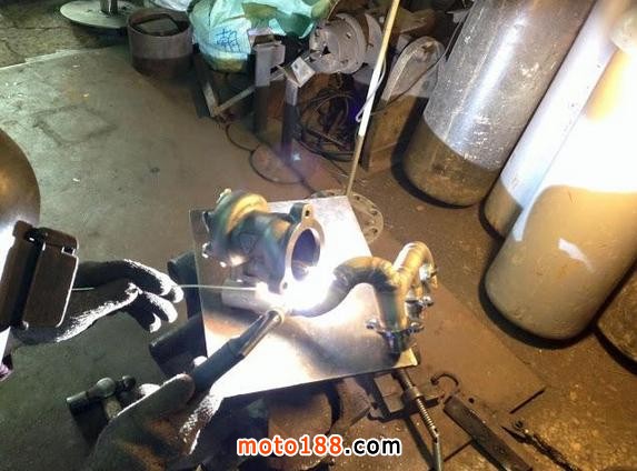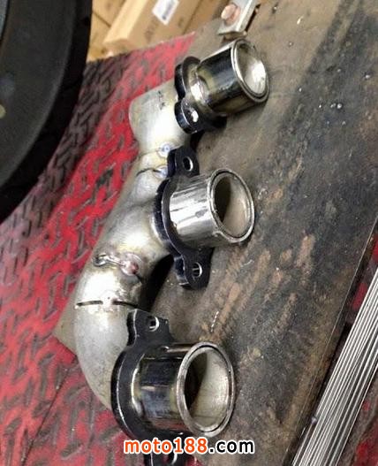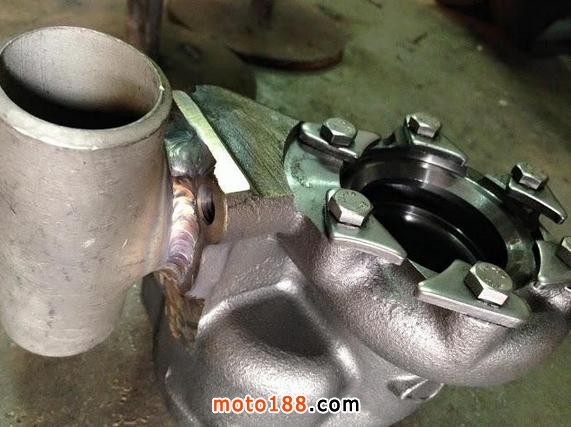 渦輪排氣入口和三通焊在一起,做為兩邊頭段二合一處。