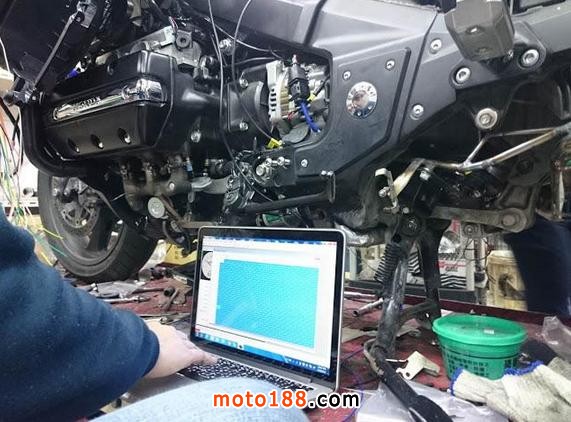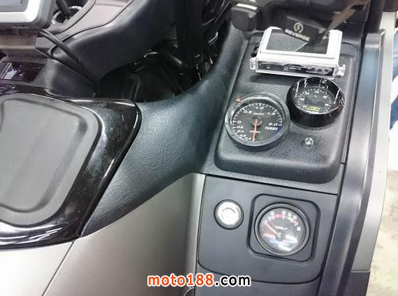 整個Gold Wing F6B 加裝渦輪的改裝,由于幾乎沒有太多經(jīng)驗可供參考,因此光是研究位置、管路、測試等等,就耗費大量時間。整臺車花費三個月才改裝完成,然而實際真正開始動工組裝到完成,只占了一周左右。如此用心的改裝,換來的是相當(dāng)?shù)驼{(diào)幾乎是原廠的外觀,就連泄壓閥因為安裝在車內(nèi),實際發(fā)動也聽不大到渦輪車特有的泄 壓聲。雖然基于發(fā)動機壽命取向,選擇的是0.4bar 的低增壓設(shè)定,但簡單推算也是原廠的1.4倍馬力呀!完全就是低調(diào)的怪獸。