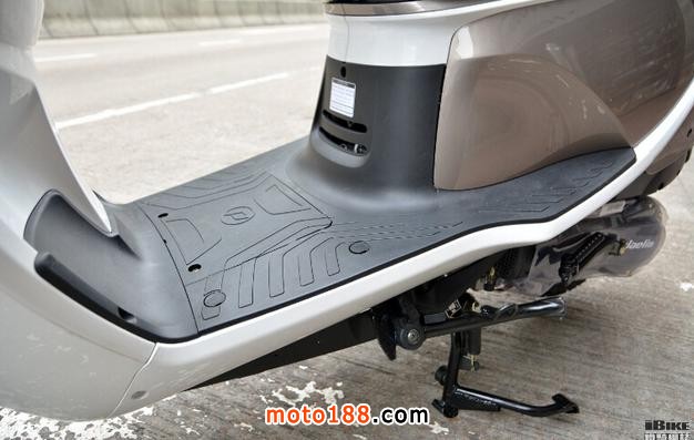 從后方觀看平地臺,車頭更有腳位空間讓騎士把雙腳向前伸展。當平地臺放了大型物件時,雙腳仍不用被迫左右突出于車身外。Aroma YC125雖然是車仔,但駕駛空間和載貨能力,絕對強勁。