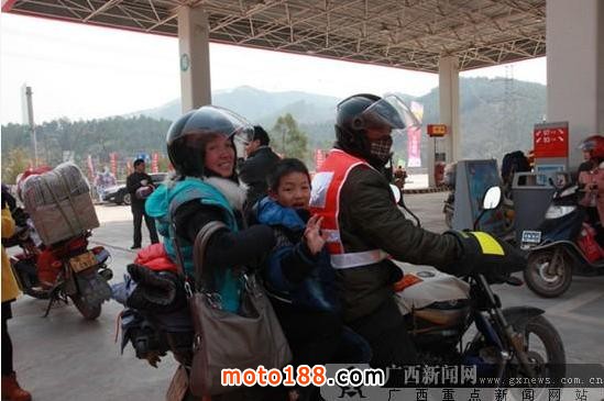 核心提示: 近日,賀州市天氣晴好,賀州市信都服務站迎來摩托大軍返程小高峰,進站休息的陶先生告訴筆者:平安返程是父母最美好的新年愿