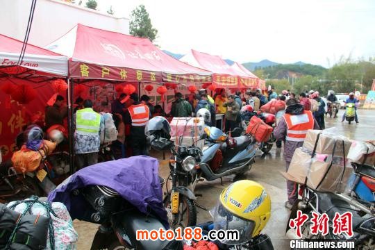 元宵節過后,大批摩托車過境賀州市返回珠三角“淘金”。
