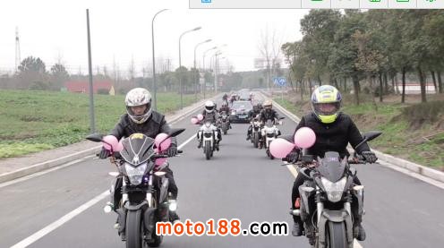 這些可不是一般的摩托車,都是很高檔的,有本田、春天、貝納利、杜卡迪等,排量最大的有650CC,最小的也有250CC。其中,一種叫杜卡迪的摩托車至少要18萬元。這些摩托車有個共同點,每輛的扶手都綁著兩只粉色的氣球。