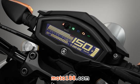 全液晶式儀表盤更具科技感。外觀設計有自家二哥、三哥(MT-09、MT-07)的影子。由于沒能啟動車子,沒能看到液晶屏顯示的具體數(shù)值,不過據(jù)官方圖片來看,各類行車信息還是很完善的。