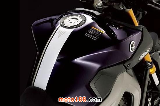 與大多數(shù)摩托車不同的是,M-SLAZ的點火開關設計在了油箱上部中間凹進處,使得車頭位置更加簡潔。硬朗的油箱設計繼承了MT系列的一貫的肌肉風格。