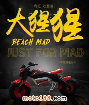 有著瘋狂、敢惹目潮物口號的BEACH MAD大猩猩,是一款性能強勁的沙灘越野電動車。首發新車采用LG 鋰電池,續航里程可達 50 公里,擁有10 寸輪胎,爬坡性能強勁,可征服沙灘或 20-25 度沙坡。大猩猩適用于公路、沙灘、河道、草地、林地、戶外越野場地等各類場地。